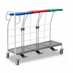 Chariot utilisé pour le transport du linge usagé en milieu hospitalier etc. Livré avec couvercle bleu et rouge, pédales et une poignée de guidage. Couvercle empêchant les odeurs désagréables de s’échapper. - Plateaux base en polypropylène, très solides pouvant supporter des sacs lourds- Montants...